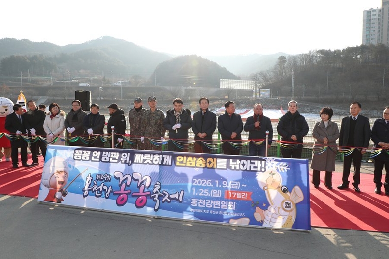 홍천강 꽁꽁축제는 매년 1월 홍천에서 열리는 겨울 축제로, 인삼송어와 함께하는 얼음낚시를 비롯해 맨손 송어잡기, 가족 실내 낚시터 등 남녀노소가 즐길 수 있는 체험 프로그램이 운영된다. 또한 얼음썰매장, 겨울철 민속놀이터, 초가집 풍경 등 전통 분위기를 살린 공간, 향토음식점 등 먹거리·놀거리가 다양하게 마련돼 방문객들에게 겨울철 즐길거리를 제공하며, 축제는 25일까지 진행된다.
