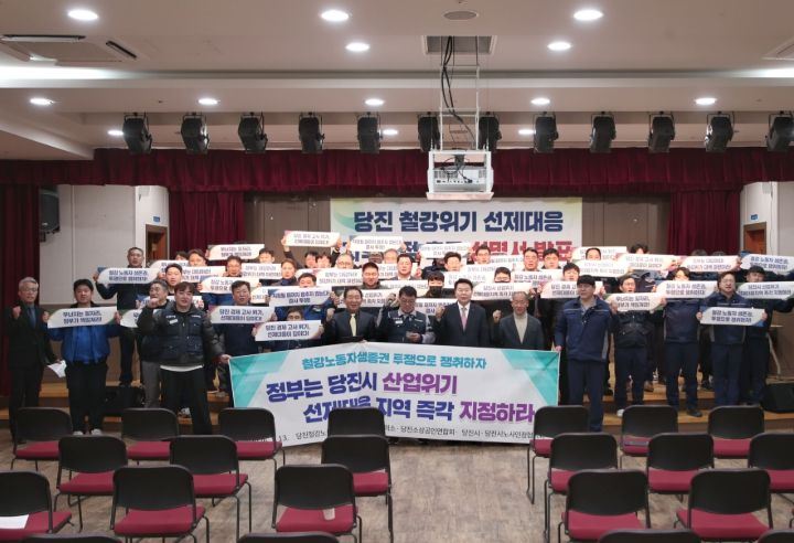 [ 타임즈 - 김시창 기자 ] 당진시는 당진 철강노동조합 협의회가 13일 당진근로자종합복지관 대강당에서 '당진시 철강산업 위기 선제대응 지역 지정 촉구 공동 성명서 발표식'을 개최했다고 밝혔다.