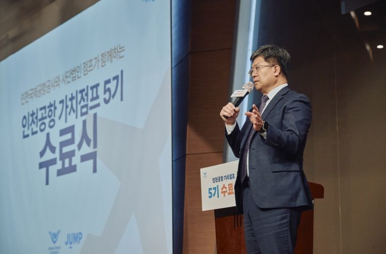 이날 수료식에는 인천국제공항공사 신가균 경영본부장을 포함해 이번 5기 가치점프 프로그램에 참여한 대학생 교육봉사자, 지역아동센터 청소년 및 교사 등 110여 명이 참석했다.
