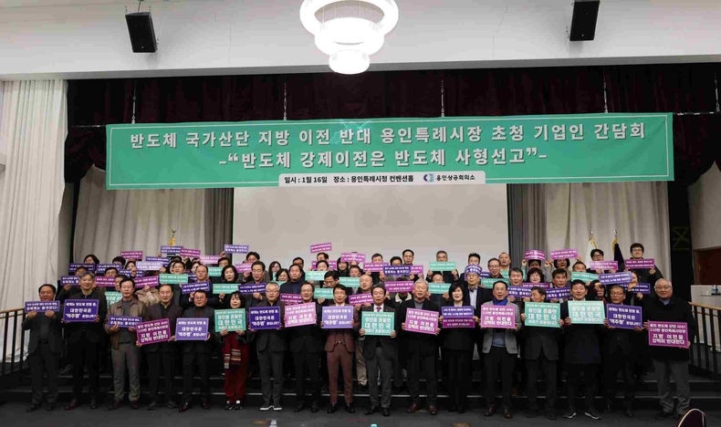 [ 타임즈 - 김시창 기자 ] 용인상공회의소(회장 이태열)는 16일 용인특례시청 컨벤션홀에서 용인지역 기업인 등 약 100여명이 참석한 가운데, ‘용인 반도체 국가산단 지방 이전 반대를 위한 기업인 간담회’를 개최했다. 본 행사에는 이상일 용인특례시장이 참석하여, 최근 타 지역으로 ‘이전론’이 제기되고 있는 반도체 국가산단의 진행경과와 지방 이전 주장에 대한 반박논리 등에 대한 설명을 함께 진행하였다.