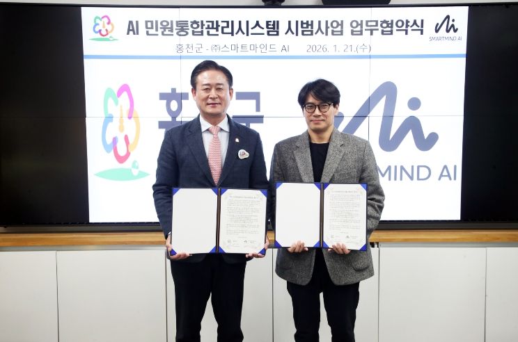 [ 타임즈 - 김시창 기자 ] 홍천군은 민원 처리의 신속성과 정확성을 높이기 위해 ㈜스마트마인드(대표 이상수)와 ‘AI 민원통합관리시스템’ 시범 사업 협약을 체결했다.