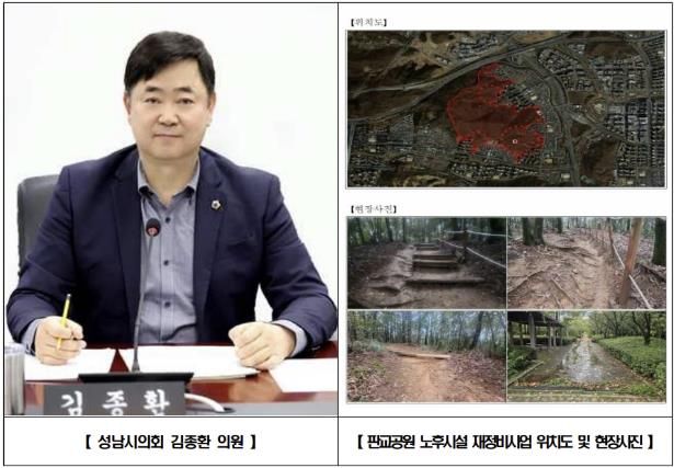 [ 타임즈 - 김시창 기자 ] 성남시의회 국민의힘 김종환 의원(판교·백현·운중·대장동, 예산결산특별위원장)은 분당구 판교동 판교공원 일원 노후 산책로와 바닥포장 등을 정비하는 재정비공사가 본격 추진됨을 밝혔다.
