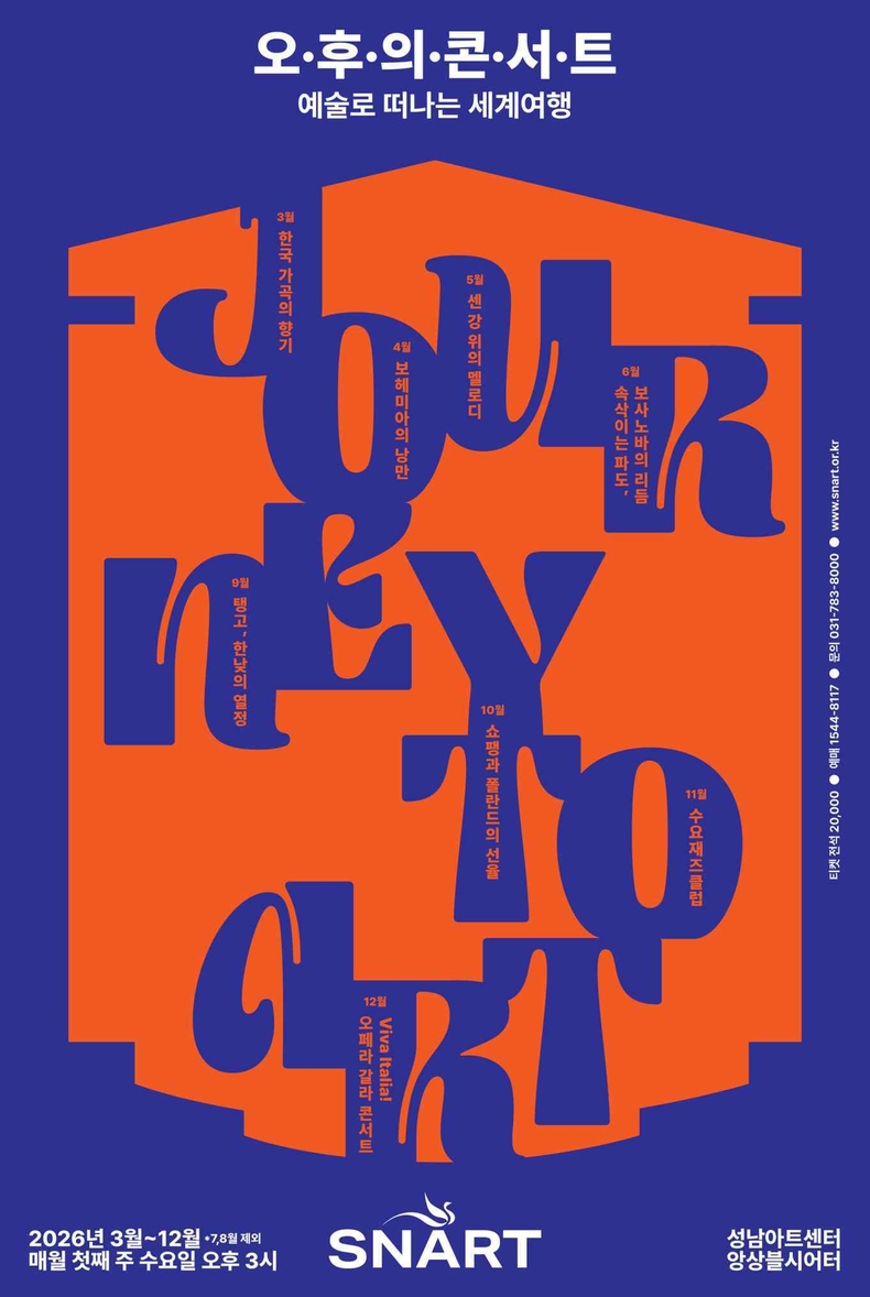 성남문화재단 윤정국 대표이사는 “‘오후의 콘서트’는 바쁜 일상에서 잠시 삶의 속도를 늦추고, 음악을 통해 세계의 문화와 정서를 만나는 시간”이라며 “평일 낮, 예술이 주는 여유와 깊이를 경험할 수 있길 기대한다”고 말했다.