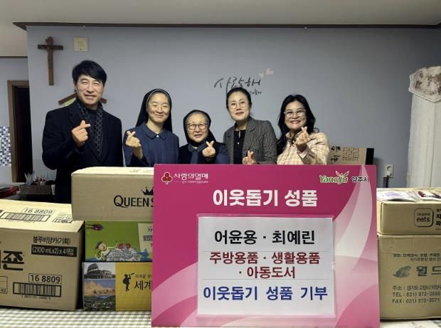 [ 타임즈 - 김시창 기자 ] 양주시 회천3동은 지난 4일 어윤용·최예린 부부가 성가소비녀회 의정부관구 소속 수녀들이 돌보고 있는 시설에 후원 물품을 기부했다고 밝혔다.