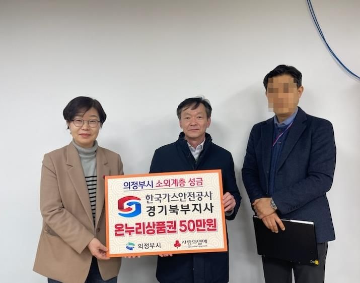 [ 타임즈 - 김시창 기자 ] 의정부시는 2월 11일 한국가스안전공사 경기북부지사가 장암종합사회복지관에 온누리상품권(1만 원권 50매)을 지정 기탁하며 ‘100일간 사랑릴레이 배턴 잇기’에 동참했다고 밝혔다.