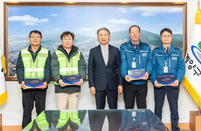윤환 구청장은 “추운 날씨와 궂은 환경 속에서도 묵묵히 현장을 지켜주신 여러분 덕분에 구민들이 안심하고 생활할 수 있다.”라며 “여러분의 책임감과 사명감에 깊이 감사드린다”라고 말했다. 이어 “무엇보다 안전을 최우선으로 근무해 달라.”라고 당부했다.