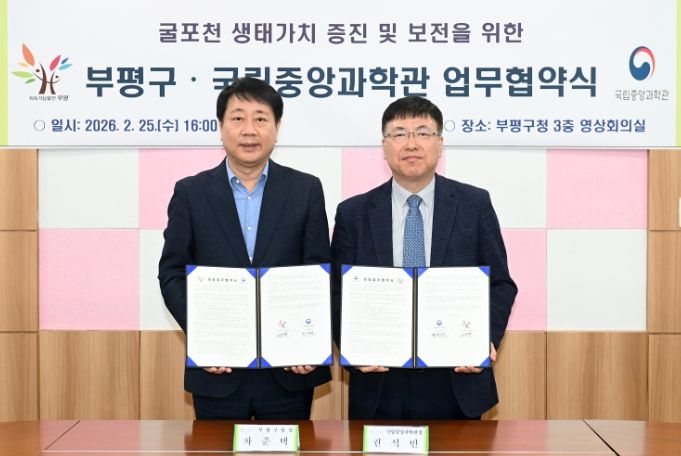 한편 구는 향후 국립중앙과학관과 실무협의체를 구성해 구체적인 협력사업을 추진한다. 굴포천 조사 결과는 생태 가치 확산과 환경 인식 제고를 위해 투명하게 공개될 예정이다.