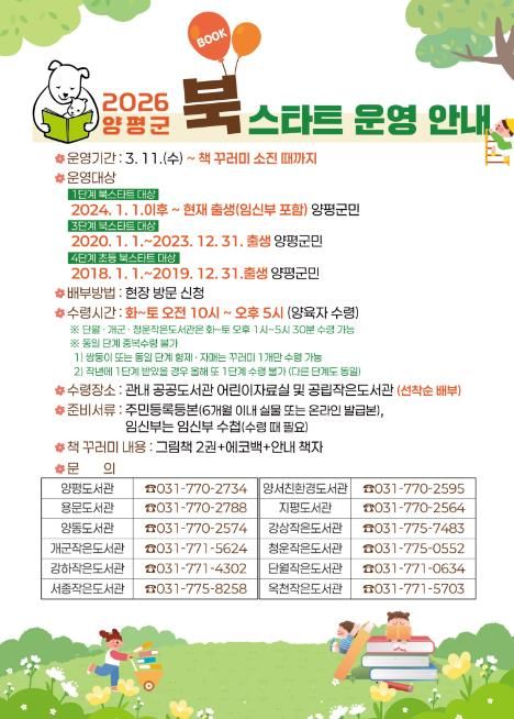 [ 타임즈 - 김시창 기자 ] 양평군은 오는 11일부터 ‘2026년 북스타트 사업’을 본격 운영한다고 밝혔다.