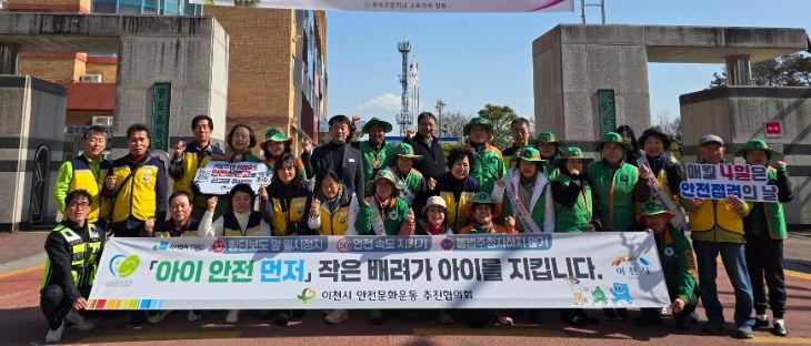 이번 캠페인은 이천시 안전문화운동 추진협의회 30여 명이 참여한 가운데 ▲횡단보도 앞 일시정지 ▲개학기 위해요소 안전점검 단속 ▲해빙기 안전수칙 등을 홍보하며, 개학기를 맞아 학교 주변 어린이 안전사고 예방과 시민들의 안전의식 제고를 위한 활동을 펼쳤다.