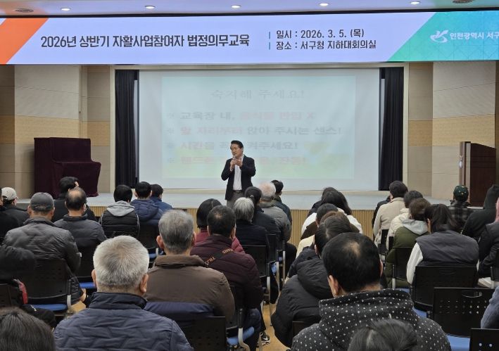 [ 타임즈 - 김시창 기자 ] 인천 서구는 지난 5일 자활사업 참여자 250여 명을 대상으로 ‘2026년 상반기 법정의무교육’을 실시했다고 밝혔다.