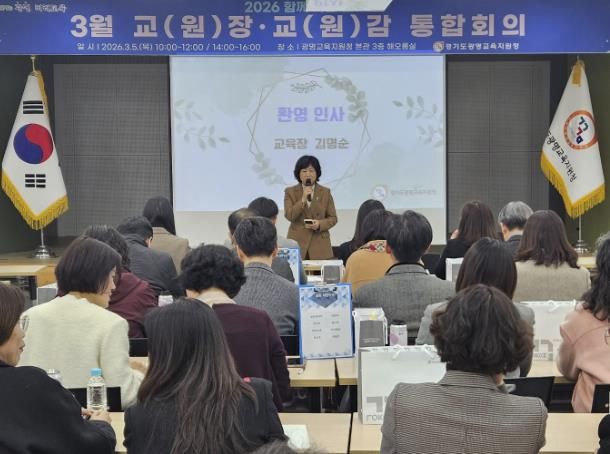 [ 타임즈 - 김시창 기자 ] 경기도광명교육지원청은 3월 5일, 광명교육지원청 3층 해오름실에서 2026 해오름 광명교육과 경기미래교육 구현을 위한 ‘2026년 3월 교(원)장, 교(원)감 통합회의’를 운영했다. 이번 통합회의는 학년 초 학교와 교육지원청, 도교육청 간의 협력을 강화하고, 학교 중심의 교육정책, 미래장학, 교육과정운영의 선순환 체제를 통해 학교 중심 행정 지원의 기틀을 마련하고자 진행됐다.