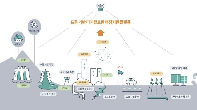 드론 활용 공공서비스 사업은 고정밀 3차원 공간정보에 인공지능 분석 모델을 개발해 농경지 이용 현황, 하천 준설량, 산사태 위험 분석 등 데이터 기반 행정에 활용할 계획이다.