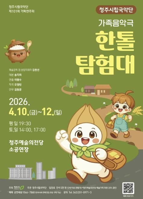 [ 타임즈 - 김시창 기자 ] 청주시립국악단은 4월 10일부터 12일까지 3일간 청주예술의전당 소공연장에서 제101회 기획연주회 가족 음악극 ‘한톨탐험대’를 개최한다고 19일 밝혔다.