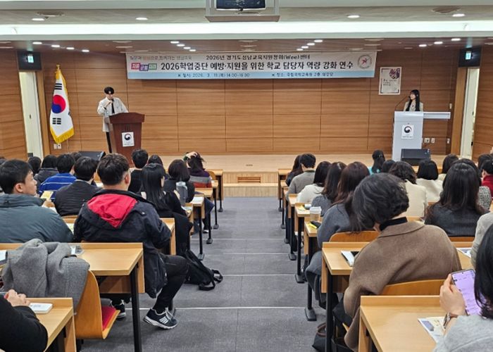 연수는 ▲2026학년도 학업중단 숙려제 예방 업무 매뉴얼 안내 ▲성남교육지원청 위(Wee)센터 학업중단 예방 사업 소개 ▲학교 밖 청소년지원센터 사업 안내 등으로 진행됐다. 아울러 질의응답을 통해 실무자들의 애로사항을 듣고, 학교 밀착형 소통을 강화하는 시간도 마련됐다.