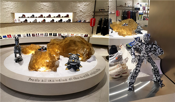 ‘아웃오브스탁’은 롯데백화점(영등포) 매장에서 한정판 운동화뿐 만아니라 에릭송의 로봇 작품 등을 전시 판매하고 있다. 번개장터 ‘브그즈트랩’(더현대, 코엑스) 매장에서도 한정판 운동화와 함께 베어브릭 아트토이 등을 구입할 수 있다.