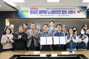 [ 타임즈 - 김시창 기자 ] 횡성군과 전국공무원노동조합 횡성군지부(지부장 성기영)는 4일 횡성군청 소회의실에서 ‘2025년 횡성군 공무원 노사협의회 합의서 서명식’을 개최했다. 서명식에는 공동의장인 최태영 부군수 및 이준연 수석부지부장을 포함, 노사협의회 위원 14명이 참석해 협의 결과를 공식 확인했다. 횡성군과 횡성군지부는 지난 9월 2일 열린 노사협의회에서 후생복지, 재난안전, 인사 등 3개 분야의 10개 안건을 상정했으며, 약 4개월간의 협의 과정을 거쳐 모든 안건에 대해 최종 합의에 도달했다. 특히 올해 노사협의회는 공무출장 중 교통사고 발생 시 보험료(본인부담금) 지원, 읍·면 행정복지센터의 업무공간·민원공간 분리 등 공무원의 사기진작과 근무환경 개선에 중점을 두고 논의를 진행했다. 최태영 부군수는 “공무원노조와의 지속적인 소통과 협력을 바탕으로 직원들의 후생복지 향상과 근무 의욕 제고에 최선을 다하겠다”며 “활기찬 직장 분위기 조성을 위해 지속적으로 노력하겠다”고 말했다. 한편, 횡성군은 이번 합의사항이 충실히 이행될 수 있도록 관련 사업의 부서별 예산 편성 절차를 거쳐 2