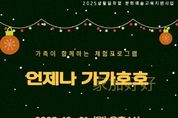[ 타임즈 - 김시창 기자 ] 충주문화관광재단이 가족대상 연말 문화예술 교육프로그램 ‘언제나 가가호호(家加好好)’를 오는 12월 21일 오후 4시부터 충주시문화회관에서 개최한다. 이번 프로그램은 2025 생활밀착형 문화예술교육지원사업의 일환으로 바쁜 일상 속에서 가족과 함께하는 시간이 점점 줄어드는 현대 사회에서, 가족이 함께 웃고 이야기 나누며 한 해를 따뜻하게 마무리할 수 있도록 기획됐다. ‘언제나 가가호호’라는 제목에는 가족이 함께하니 즐겁고, 문화예술로 행복을 더한다는 의미가 담겨 있다. 참가대상은 2인 이상 가족 단위이며, '2025 송년음악회'와 연계하여 보다 풍성한 연말 문화 경험을 제공한다. 프로그램으로는 ▲반려동물 인식표 만들기 ▲크리스마스 파우치 만들기 ▲액막이 명태 도어벨 만들기 ▲미니 벽걸이 트리 만들기 4가지 체험이 진행되며 회차당 10가족을 선착순으로 모집한다. 또한 행사 당일에는 문화회관 로비에 2.7m 규모의 대형 크리스마스트리와 포토부스가 설치되어, 가족들이 특별한 연말 추억을 사진으로 남길 수 있는 공간도 마련된다. 재단 관계자는 “이번 프로