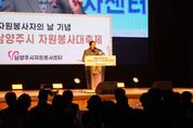 [ 타임즈 - 김시창 기자 ] 남양주시는 지난 6일 남양주시체육문화센터 실내체육관에서 ‘2025년 남양주시 자원봉사 대축제’를 성황리에 개최했다고 7일 밝혔다. 이번 행사는 12월 5일 ‘자원봉사자의 날’을 기념해 사단법인 남양주시자원봉사센터에서 주최했으며, 한 해 동안 남양주 곳곳에서 나눔을 실천한 자원봉사자들의 노고를 격려하고 활동의 결실을 함께 나누기 위해 마련됐다. 행사에는 1,300여 명의 자원봉사자와 내빈이 참석해 뜻깊은 시간을 함께했다. 식전공연으로 줌바댄스 ‘아이린줌바크루’의 역동적인 무대가 펼쳐졌으며, 1부 축하 행사에서는 자원봉사자 MC 장현주의 진행 아래 캘리그래피 퍼포먼스 ‘캘리깡패’가 이어졌다. 이와 함께 가수 연미연과 이효진의 축하공연이 더해져 현장의 분위기를 한층 뜨겁게 달궜다. 2부 기념식에서는 ‘무럭이가족봉사단’ 김태하 어린이가 가족봉사활동 경험을 나누는 이그나이트 발표를 통해 자원봉사의 의미를 되새기는 감동적인 시간을 선사했다. 남양주시민의 자원봉사 참여는 올해 큰 성장을 기록했다. 11월 기준 자원봉사자 등록 인원은 약 21만 명으로 전체 시민의 약 29%에 달해,