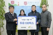[ 타임즈 - 김시창 기자 ] 중앙한방병원에서는 지난 16일 여주시에 이웃돕기 현물로 130만원 상당의 두유 100박스를 기탁했다. 김상태 병원장은 수년간 기부를 이어오고 있으며, 금번 기탁된 두유는 구세군여주기초푸드뱅크(오학동 소재)에 전달하여 결식 우려 등으로 식료품 등을 지원받고 있는 취약계층에게 지원될 예정이다. 여주시에서는 연말연시 나눔문화 확산을 위해 2025. 12. 1. ~ 2026. 1. 31. 기간 동안'희망2026 나눔캠페인'을 추진중에 있으며, 여주시청 외에도 12개 읍면동 행정복지센터를 통해 연일 개인 · 단체 · 기업 등 이웃을 돕고자 하는 기부자들의 따스한 손길이 이어지고 있다.