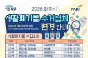 [ 타임즈 - 김시창 기자 ] 파주시는 2026년 1월 1일부터 관내 생활폐기물(쓰레기) 수집·운반 대행업체가 변경됨에 따라, 시민에게 정확한 정보를 안내하고 현장 운영이 원활히 정착될 수 있도록 홍보와 안내를 강화하고 있다고 밝혔다. 이번 대행업체 변경으로 지역별 담당 업체가 달라졌으며, 특히 문산읍의 경우 세부 지역(리 단위)에 따라 담당 업체가 서로 다를 수 있어 시민들의 각별한 주의가 필요하다. 변경된 담당 업체 정보는 파주시청 누리집에서 확인하거나, 자원순환과 청소행정팀 및 민원전화상담실(콜센터)로 문의하면 안내받을 수 있다. 파주시는 시민 혼선을 최소화하기 위해 변경 사항을 지속적으로 홍보하는 한편, 대행업체와 협력해 현장 안내를 강화하고 주민 문의에 신속히 대응해 나갈 계획이다. 심재우 자원순환과장은 “대행업체 변경 초기에는 일시적인 혼선이 발생할 수 있다”라며 “현장 점검을 강화해 수거 지연 등 문제를 신속히 해소하고 청소 행정이 조기에 안정될 수 있도록 노력하겠다”라고 밝혔다.