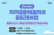 [ 타임즈 - 김시창 기자 ] 파주시가 오는 23일까지 2026년 상반기 지역공동체 일자리 및 공공근로사업 참여자 14명을 모집한다고 밝혔다. 지역공동체 일자리와 공공근로사업은 취업 취약계층에게 공공일자리를 제공해 최소한의 생계를 보장하고 재취업을 위한 도전의 발판을 마련하기 위한 일자리 지원 사업이다. 지역공동체 일자리사업은 ▲주말농장 환경 정비 ▲촘촘보조교사 ▲마을정원 조성 및 유지관리 등 4개 분야에서 총 11명을, 공공근로사업은 ▲청소년 활동 프로그램 보조 ▲초등 생존수영 프로그램 업무 지원 ▲어린이보호구역 폐쇄회로텔레비전(CCTV) 집중 관제 등 3개 분야에서 총 3명을 각각 모집한다. 선발자들은 3월 3일부터 6월 26일까지 약 4개월간 주 5일 근무하게 되며, 4대 보험 가입과 함께 주휴수당 및 연차수당이 지급된다. 지역공동체 일자리사업의 시간당 임금은 1만 320원이며, 근무일마다 부대비 5천 원이 별도로 지급된다. 공공근로사업의 시간당 임금은 1만 2,070원이다. 참여 자격은 ▲사업개시일 기준 18세 이상 ▲재산 4억 원 이하를 만족하고, 가구소득은 기준중위소득을 기준으로 지역공동