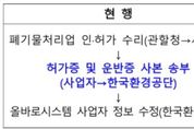 [ 타임즈 - 김시창 기자 ] 고양특례시는 폐기물처리업 인허가(변경)절차를 개선해 ‘올바로시스템’ 사업자 정보 수정 과정의 불편을 해소하고 행정의 정확성과 효율성을 높였다고 밝혔다. 그동안 폐기물처리업 인허가(변경)가 이루어질 경우, 사업자가 직접 허가증 사본을 한국환경공단에 제출해 올바로시스템 변경을 요청해야 하는 번거로운 절차가 있었으며, 이로 인해 폐기물 처리 지연이나 정보 불일치 등의 문제가 발생하기도 했다. 이에 시는 폐기물처리업 인허가 수리 시, 시가 한국환경공단에 변경사항을 직접 통보하고 한국환경공단이 올바로시스템에 사업자 정보를 즉시 수정하는 방식으로 절차를 개선했다. 현재는 수입·운반업에 한정하며 이후 전 업종으로 확대할 예정이다. 이번 개선을 통해 사업자의 행정 부담이 크게 줄어들고, 폐기물 관리의 신뢰성과 정확성이 한층 강화될 것으로 기대된다. 시 관계자는 “이번 제도 개선은 사업자와 행정기관 모두의 불편을 줄이기 위한 적극행정의 일환”이라며 “앞으로도 현장 중심의 행정 개선을 통해 시민과 사업자 모두가 체감할 수 있는 행정 서비스를 제공하겠다”고 밝혔다.