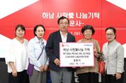[ 타임즈 - 김시창 기자 ] 지난 3일, 청정하남시니어협회(청시회)는 성금 100만원을 하남시에 전달하고 기탁식을 가졌다. 이날 기탁식에는 이현재 하남시장을 비롯해 박규섭 회장 등 관계자들이 참석하여 자리를 빛냈다. 박규섭 회장은 “추석 명절을 맞아 소외된 이웃들에게 정을 나누고, 조금이나마 도움이 되길 바라며 경제적으로 어려운 시기를 잘 극복해 나갔으면 한다”고 말했다. 이현재 하남시장은“ 따뜻한 마음을 나눠주시는 청정하남시니어협회에 깊이 감사드리며 기탁해 주신 성금은 관내 어려운 이웃에게 소중히 전달하겠다”고 전했다. 이날 기탁된 성금은 관내 취약계층에게 배부될 예정이다.