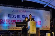 [ 타임즈 - 김시창 기자 ] 양평군 양동면은 지난 6일, 쌍학교 야외무대에서 제35회 추석맞이 면민 노래자랑을 성황리에 개최했다고 밝혔다. 이번 행사는 비가 내리는 궂은 날씨에도 불구하고 면민들의 뜨거운 참여와 열정으로 추진됐으며, 고향을 찾은 귀성객과 주민들이 함께 어우러져 명절의 흥과 정을 나누는 화합의 장이 됐다. 특히 이날 행사에는 전진선 양평군수가 참석해 직접 인사말을 전하고 경품 추첨에도 참여하며, 주민들과 소통하는 시간을 가졌다. 전진선 양평군수는 “비 오는 날씨에도 함께해 주신 양동면 주민 여러분께 진심으로 감사드린다”며 “오늘처럼 한마음으로 웃고 즐기는 모습이 바로 행복한 양평의 힘”이라고 전했다. 노래자랑 본선에는 30명의 참가자가 무대에 올라 다양한 장르의 노래와 퍼포먼스를 선보이며 큰 호응을 얻었다. 초대가수 한가빈의 축하 무대와 각종 경품 추첨 이벤트도 더해져 현장은 열띤 분위기로 가득했다. 정창업 양동면장은 “이번 행사는 주민 한 분 한 분의 참여로 완성된 뜻깊은 자리였다”며 “앞으로도 지역의 정과 문화를 함께 나눌 수 있는 자리를 지속적으로 마련해, 모두가