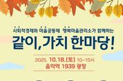 [ 타임즈 - 김시창 기자 ] 가평군은 오는 18일 오전 10시부터 오후 3시까지 음악역 1939 광장에서 주민과 함께하는 축제 ‘2025년 같이, 가치 한마당’을 연다. 이번 행사는 사회적경제기업의 판로 확대와 마을공동체, 경기행복마을관리소의 활동 성과를 알리고 주민 참여를 확대하기 위해 마련됐다. 행사에는 사회적경제기업 5곳, 마을공동체 16곳, 경기행복마을관리소 4곳 등 총 25개 단체가 참여한다. 이날 주민들은 현장에서 직접 사회적경제기업의 제품을 구매할 수 있으며, 공동체별 특색 있는 프로그램을 즐길 수 있다. 주요 프로그램은 △사회적경제기업 생산품 홍보·판매 △공동체와 경기행복마을관리소 활동 전시 및 무료 체험 △합창·뮤지컬 갈라쇼·힐링체조 등 공연 △경품 이벤트 등이 마련돼 있다. 특히 가평마을교육공동체가 제작한 단편영화 상영 등 주민 주도 콘텐츠도 선보일 예정이다. 가평군 관계자는 “‘같이, 가치 한마당’ 축제를 통해 지역사회에서 사회적경제와 공동체 활동이 더욱 확산되기를 기대한다”며 “이번 행사가 지역경제의 활력으로 이어질 수 있도록 주민 여러분의 많은 방문과 성원을 부탁드린다”고