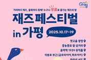 [ 타임즈 - 김시창 기자 ] 가평군은 (사)문화현상과 함께 오는 17일부터 19일까지 3일간 ‘재즈페스티벌 in 가평’을 개최한다. 이번 축제는 누구나 부담 없이 즐길 수 있는 무료 음악 축제로, 가평읍내 곳곳(잣고을 광장, 흥농종묘 앞 삼거리, 음악역1939 뮤직홀, 자라섬 서도 등)을 재즈 선율로 물들일 예정이다. 올해 ‘재즈페스티벌 in 가평’은 세계적인 아티스트와 한국의 대표 뮤지션들이 함께하는 풍성한 라인업으로 구성됐다. 콜롬비아의 강렬한 라틴계 리듬을 선보이는 ‘프렌테 쿰비에로’, 싱가포르의 소울 보컬 여왕으로 불리는 ‘알레메이 페르난데즈’, 프랑스의 낭만적인 감성 보컬리스트 ‘마리옹 랑팔’ 등이 무대를 꾸민다. 국내 출연진 무대 역시 다채롭다. 한국 록의 아이콘 ‘김민규(델리스파이스, 스위트피)’를 비롯해, 한국 펑크 음악의 개척자 ‘한상원 밴드’, 그리고 2025 한국대중음악상 최우수 재즈 보컬 음반상 수상자 ‘남예지’가 참여해 세대를 아우르는 음악의 향연을 선보인다. 축제는 3일 동안 총 5가지 테마 스테이지로 나뉘어 운영된다. 먼저, ‘파티스테이지(잣고을광장)’에서는 록, 펑크,