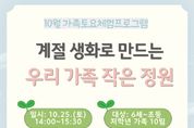 [ 타임즈 - 김시창 기자 ] 인천광역시교육청연수도서관은 오는 10월 25일 오후 2시 평생학습1실에서 가족 이용자를 위한 ‘10월 가족 토요체험 프로그램’을 운영한다. 이번 프로그램은 ‘우리 가족 마음 정원’을 주제로 가을의 정취를 담은 그림책을 함께 읽으며 가족의 마음을 돌아보고 함께 소통하는 시간을 갖는다. 이어지는 원예 활동에서는 계절 생화를 활용해 가족의 작은 정원을 만들며 자연과 감성을 나눌 예정이다. 참여 신청은 10월 13일부터 연수도서관 누리집에서 선착순 접수하며, 자세한 내용은 연수도서관 독서문화과 로 문의하면 된다.