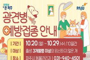 [ 타임즈 - 김시창 기자 ] 파주시는 반려견을 동반한 야외활동이 잦아지는 가을을 맞아 오는 20일부터 29일까지 생후 3개월 이상의 임신하지 않은 개를 대상으로 광견병 예방접종을 실시한다고 밝혔다. 광견병은 바이러스에 의해 사람과 동물 모두에게 감염될 수 있는 인수공통전염병으로, 잠복기가 상당히 길고 증세가 나타날 경우 치사율이 매우 높기 때문에 사람과 반려동물 모두를 위해 반려견은 매년 1회 반드시 예방접종할 것을 적극 권장하고 있다. 시는 하반기 광견병 예방사업을 위해 예방백신 4,500마리 분을 무상 지원하며, 예방접종을 희망하는 반려견 보호자는 33개 지정 동물병원을 방문해 시술비 1만 원만 부담하면 접종이 가능하다. 참여 동물병원 목록은 파주시청 누리집 공고문을 통해 확인할 수 있다. 동물병원이 없는 읍면지역은 시에서 직접 수의사를 파견해 순회접종을 진행하며, 이 경우 접종비 전액을 시에서 지원할 방침이다. 읍면지역 순회접종 일정은 해당 읍면 행정복지센터 산업팀에 문의하면 된다. 아울러 파주시는 야생동물의 광견병 전파를 막기 위해 광견병 미끼백신을 너구리 등 야생동물이 자주 출몰하는 관내
