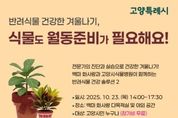 [ 타임즈 - 김시창 기자 ] 고양특례시는 반려식물의 건강한 겨울나기를 위한 맞춤 해법을 제공하는 ‘그린케어, 겨울 대비 반려식물 돌보기 행사’를 오는 10월 23일 오후 2시부터 5시 30분까지 백마 화사랑에서 개최한다고 밝혔다. 먼저 백마 화사랑 야외 공간에서는 고양시식물병원 전문가가 상주해 시민이 직접 가져온 반려식물에 대해 1:1 현장 진단을 제공하고, 병해충, 과습 등 식물의 상태에 따라 분갈이, 영양제 처방 및 맞춤형 월동 관리법을 안내한다. 별도 신청 없이 당일 현장 접수로 참여 가능하다. 실내에서는 ‘반려식물 동절기 핵심 관리법’을 주제로 체험형 특강이 진행된다. 겨울철 생육 관리 요령, 휴면기 대비 가지치기 및 분갈이 실습 등 내년 봄의 성장을 위한 전문적인 지식을 습득할 수 있다. 특강은 백마 화사랑 누리집에서 선착순 12명까지 신청할 수 있다. 시 관계자는 "겨울은 식물이 가장 취약해지는 시기인 만큼, 이번 행사를 통해 전문가의 과학적인 진단과 맞춤형 솔루션으로 반려식물과 더욱 건강하고 풍요롭게 겨울을 나시길 바란다”고 전했다. 행사에 대한 자세한 내용과 특강 신청은 백마 화사랑