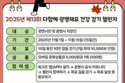 [ 타임즈 - 김시창 기자 ] 광명시는 시민들의 건강한 생활습관 형성과 걷기 문화 확산을 위해 ‘제13회 다함께 광명해요 건강 걷기 챌린지’를 진행한다. 이번 챌린지는 오는 11월 1일부터 15일까지 15일간 열리며, 광명시민과 광명시에 소재한 직장인이면 누구나 참여할 수 있다. 참가자는 기간 동안 총 10만 보를 걸으면 되며, 1일 최대 1만 보까지만 인정된다. 참여 방법은 간단하다. 10월 29일부터 워크온(WalkOn) 앱을 설치하고 광명시 공식 커뮤니티에 가입한 뒤 ‘제13회 건강 걷기 챌린지 참여하기’를 눌러 걷기를 시작하면 된다. 단, 목표 걸음을 달성한 시민은 ‘응모하기’ 버튼을 눌러 참여를 완료하면 된다. 누적 걸음 수 목표를 달성한 참여자 중 추첨으로 100명에게 모바일 문화상품권 5천 원권 1매를 지급한다. 당첨자 발표와 상품 지급은 11월 17일부터 11월 21일까지 진행할 예정이다. 나기효 건강위생과장은 “매회 많은 시민이 참여하는 ‘다함께 광명해요 건강 걷기 챌린지’는 일상 속 건강한 습관을 형성할 좋은 기회다”며 “시민들이 걷기를 통해 건강도 챙기고, 작은 선물