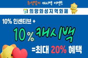 [ 타임즈 - 김시창 기자 ] 화성특례시가 추석 명절을 맞아 9월 22일부터 10월 4일까지 ‘희망화성지역화폐 특별 캐시백 이벤트’를 운영한다. 이번 이벤트는 행사 기간 중 희망화성지역화폐로 3만 원 이상 결제 시 결제금액의 10%를 캐시백으로 돌려주는 이벤트로, 1인당 최대 3만 원(결제금액 기준 30만 원)까지 캐시백을 받을 수 있다. 시는 ‘희망화성지역화폐’ 충전 시 충전 금액의 10%를 인센티브로 상시 제공하고 있으며, 지난 1일부터 10월 31일까지는 인센티브가 지급되는 한도금액을 월 100만 원으로 확대해 월 최대 10만 원까지 인센티브를 제공하고 있다. 여기에 캐시백 이벤트까지 더해지면 시민들은 지역화폐 결제금액 기준 3만 원부터 30만 원까지는 20% 할인 효과를 누릴 수 있게 된다. 캐시백은 지역화폐 충전 시 지급된 인센티브를 제외한 본인 충전금 사용분에 한해 적용되며, 예산이 소진될 경우 이벤트는 조기 종료될 수 있다. 지급된 캐시백은 연 매출 12억 원 이하 가맹점에서만 사용할 수 있으며, 사용기한은 2025년 12월 31일까지다. 시는 코로나19 이후 장기간 이어진 경기침체 속에서 이번 이벤트가 시민들의 알뜰한 명절 준비와 지역 내 소비