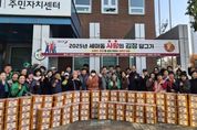 [ 타임즈 - 김시창 기자 ] 오산시 세마동 행정복지센터는 세마동 단체연합이 11월 19일과 20일 이틀간 세마동 행정복지센터 1층 광장에서 지역 취약계층을 위한 ‘2025년 세마동 사랑의 김장담그기’ 행사를 따뜻한 분위기 속에서 진행했다고 밝혔다. 이번 김장 나눔 행사는 19일 김장 속재료 준비를 시작으로, 20일 속 채우기와 포장 등 본 작업이 이어졌으며, 세마동 단체연합은 ‘손끝의 온정을 담아 전합니다’라는 슬로건 아래 정성을 모아 행사를 진행했다. 올해 마련된 김장은 총 480포기 규모로, 세마동 관내 독거노인, 저소득층, 한부모 가정 등 어려운 이웃들에게 20일 당일 전달됐다. 신정순 세마동 새마을부녀회장은 “김장 나눔은 세마동 주민들이 마음을 모아 서로를 돌보는 뜻깊은 시간”이라며 “작은 정성이지만 필요한 이웃들에게 따뜻함이 전해지길 바란다”고 말했다. 유미정 세마동장은 “김장담그기 행사는 세마동 주민들의 마음이 모여 만들어진 정성의 상징”이라며 “정성껏 담근 김치가 겨울을 앞둔 이웃들에게 큰 힘이 되길 바란다”고 전했다.