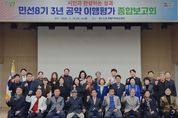 [ 타임즈 - 김시창 기자 ] 청주시는 19일 유네스코 국제기록유산센터에서 공약이행시민평가위원들과 관계 공무원 등 80여 명이 참석한 가운데 ‘민선8기 3년 공약 이행평가 종합보고회’를 개최했다. 이번 보고회에서는 지난 10월 개최된 각 분과회의를 통해 도출된 공약 과제의 이행평가 결과를 공유하고 남은 기간의 완성 방향과 향후 미래 과제에 대해 논의했다. 평가위원들은 민선8기 4년차에 대부분의 공약이 결실을 맺고 있고, 청주시의 공약이행이 시민이 체감하는 성과로 안정적으로 추진되고 있다고 평가했다. 88개의 공약과제는 △완료 12건 △이행 후 계속 추진 43건 △정상추진 32건 등 이행률 83.6%로 대부분이 가시적인 성과로 이어지고 있는 것으로 나타났다. 추진현황을 살펴보면, 민선8기 3년차에서는 도시기반 정비, 생활 인프라 확충, 투자활성화 등 다양한 분야에서 구체적인 성과를 거뒀다. 우선 시민참여와 사회공헌 활동의 중심 거점이 될 청주시 자원봉사센터 이전 확충사업이 지난 10월 완료됐으며, 무심천·미호강 친수공간 조성사업을 통해 모충교 일대 환경정비(4월)와 미호강 생태공원 편의시