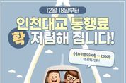 [ 타임즈 - 임성희 기자 ] 12월 18일부터 인천대교 통행료 확 저렴해 집니다! - 승용차기준 5,500원 → 2,000원(약 63% 인하!) ■ 언제부터, 얼마나 달라지나요? 2025년 12월 18일 00시 부터 시행 인천대교 통행료 평균 인하폭은 63%… ■ 차종별 통행료 한눈에 보기 · 경차: (인하 전) 2,750원 → (인하 후) 1,000원(▼1,750원) · 소형: (인하 전) 5,500원 → (인하 후) 2,000원(▼3,500원) · 중형: (인하 전) 9,400원 → (인하 후) 3,500원(▼5,900원) · 대형: (인하 전) 12,200원 → (인하 후) 4,500원(▼7,700원) ■ 차종 한눈에 구별하기 (경차) · 배기량 1,000cc 미만 · 길이 3.6m·너비 1.6m·높이 2.0m 이하 (소형) · 승용차, 16인승 이하 승합차 · 2.5톤 미만 화물차 · 2축 차량 / 윤폭 279.4mm 이하 (중형) · 17인승 이상 버스 · 2.5톤 이상~10톤 미만 화물차 · 2축 차량 / 윤폭 279.4mm 초과 (대형) · 10톤 이상 대형