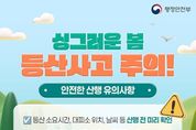 [ 타임즈 - 임성희 기자 ] ■ 싱그러운 봄 등산사고 주의! · 등산 소요시간, 대피소 위치, 날씨 등 산행 전 미리 확인 · 가벼운 몸풀기 및 체력에 맞는 등산로 선택 · 산행 중 몸에 무리가 오면 즉시 하산 · 반드시 지정된 등산로 이용 · 출입이 통제된 위험 구역 진입 금지 · 체온 유지를 위한 여벌의 옷이나 보온용품 챙기기
