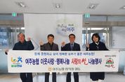 [ 타임즈 - 김시창 기자 ] 여주농협은 지난 30일 관내 어려운 이웃들을 돕기 위한 ‘사랑의 쌀’기탁식을 가졌다. 이날 농협은 추운 겨울철 경제적 어려움을 겪고 있는 소외계층에게 전달해 달라며 백미 10kg 총30포를 강천면 행정복지센터에 전달했다. 이번 기탁은 연말연시를 맞아 지역사회의 나눔 문화를 확산하고, 농협의 사회적 책임을 다하기 위해 마련됐다. 전달된 백미는 관내 저소득 홀몸어르신, 복지사각지대 가구 등 도움이 필요한 이웃들에게 소중히 전달될 예정이다. 이병길 여주농협 조합장은 “작은 정성이지만 우리 주변의 어려운 이웃들이 따뜻한 겨울을 보내는 데 도움이 되길 바라는 마음으로 준비했다”며, 앞으로도 여주농협은 지역사회와 함께 성장하며, 지속적인 나눔활동을 통해 이웃사랑을 실천해 나가겠다“고 전했다. 배인수 강천면장은 ”여주농협 과 이병길 조합장님께 깊은 감사를 드리며, 기탁해 주신 물품은 지원이 필요한 분들에게 정성를 담아 잘 전달하겠다“고 화답했다.