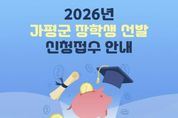 [ 타임즈 - 김시창 기자 ] 가평군이 지역 학생들의 균등한 교육 기회를 보장하고 우수 인재를 육성하기 위해 2026년도 장학생 선발에 나선다. 군은 올해 중학생 17명, 고등학생 76명, 대학생 107명 등 총 200명을 장학생으로 선발할 계획이다. 장학금은 학생들의 다양한 상황과 역량을 고려해 △으뜸 △특기 △복지 △환경 △보금자리 등 5개 분야로 나눠 선발한다. 신청 자격은 공고일(3월 3일) 기준 가평군에 3년 이상 거주한 군민 또는 그 자녀인 중‧고등학생과 대학생이다. 신청을 희망하는 학생은 공고문을 참고해 5개 분야 가운데 하나를 선택한 뒤 신청서와 관련 구비서류를 준비해 거주지 관할 읍면사무소에 제출하면 된다. 접수 기간은 3월 4일부터 26일 오후 6시까지다. 자세한 사항은 가평군청 홈페이지 고시공고를 통해 확인할 수 있다.