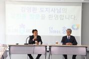 [ 타임즈 - 김시창 기자 ] 김영환 충청북도지사는 13일 충주를 방문해 지역 내 주요 현안사업장과 민생현장을 살피고 도정보고회를 통해 충주시민과 소통의 시간을 가졌다. 김 지사는 이날 통합돌봄 관계자와의 오찬간담회를 시작으로 달천동 행정복지센터를 방문해 생활 SOC사업 운영 현장을 확인하고 주민 주도의 도시재생 사업의 성과를 격려했다. 이어, 전통시장 장보기 행사와 함께 시장상인들의 현장 이야기를 청취했으며, 준공을 앞둔 건지노을숲 공사 현장을 살피며 관광분야 종사자와 함께 간담회를 가졌다. 이후 충주시의회 의원들과 지역 현안에 대한 의견을 나누고 3층 대회의실에서 300여 명의 충주시민이 참여한 가운데 도정보고회를 진행했다. 보고회에서는 2026년 도정운영방향과 함께 일하는밥퍼, 의료비후불제, 도시농부, 도시근로자 등 도정 주요사업을 소개했다. 또한, 충주시민과의 토크콘서트에서 △충북 도립 대표도서관 충주 건립 △탄금호 금가권역 생태관광공원 조성 △특장차 수소파워팩센터 건립 △충주시립노인요양원 기능보강 △충주 지방정원 조성 등 시 주요 사업에 대한 의견을 나눴다. 김영환