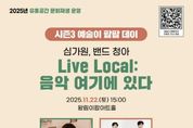 [ 타임즈 - 김시창 기자 ] 의왕시 이팝아트홀(의왕시 왕곡로74)이 11월 22일 오후3시, 지역 예술인들이 함께 꾸미는 음악 축제 ‘Live Local:음악, 여기에 있다’를 개최한다. 이번 공연은 지역의 숨은 전문예술인을 발굴·지원하고 예술인 간 네트워크를 형성하기 위해 기획된 무대로, 시민들이 일상 속에서 가까이 음악을 즐길 수 있는 특별한 시간을 선사한다. 무대에는 의왕을 중심으로 활동 중인 밴드 ‘청아’와 싱어송라이터 ‘심가원’이 출연한다. 두 아티스트는 자신만의 감성과 음악 세계를 바탕으로 도시의 일상과 청춘의 순간들 따뜻한 멜로디로 풀어낼 예정이다. 밴드 ‘청아’는 서정적이면서도 에너지 넘치는 사운드와 깊이 있는 보컬, 따뜻한 선율로 관객의 공감을 이끌 예정이다. 심가원은 진솔한 가사와 부드러운 음색으로 사람 사이의 감정을 노래하며 공감을 전한다. 윤은숙 의왕시 문화관광과장은 “이번 공연은 지역 예술인들이 주체가 되어 시민과 호흡하는 뜻깊은 무대”라며 “많은 분들이 지역에서 피어나는 예술의 생동감을 즐기셨으면 좋겠다”고 말했다.