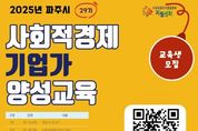 [ 타임즈 - 김시창 기자 ] 파주시는 사회적가치 실현을 위한 사회적경제 생태계 확산을 목표로 ‘2025년 하반기 사회적경제 기업가 양성 교육’을 운영한다. 교육은 10월 14일부터 11월 27일까지 매주 화·목 19~21시에 진행되며, 금촌어울림센터 1층에서 총 14강으로 진행된다. 대상은 관내 사회적경제 창업 희망자 및 관심 시민이며, 정원은 선착순 30명이다. 교육과정은 사회적경제의 철학과 기업가정신을 시작으로, ▲협동조합·마을기업·사회적기업의 제도 이해 ▲소셜 비전 수립 ▲지역자원 발굴·활용 ▲홍보·마케팅 ▲조직 운영 ▲사회적가치 체계 구축까지 창업 전 과정을 단계적으로 다룬다. 특히 생성형 인공지능(AI)을 활용한 사업계획서 작성 실습으로 변화하는 환경에 바로 적용할 수 있는 역량을 기를 수 있도록 구성했다. 특화 프로그램으로 업종별 자문상담을 마련해 유통·제조, 돌봄·사회서비스, 교육·관광·체험, 환경·자원순환 분야의 현직 사회적경제 기업 대표들이 사례 중심의 밀착 상담을 제공한다. 또한 창업 단계부터 사회적기업 인증까지의 과정을 성공적으로 거친 선배 기업가와의 만남도 진행되어 실제 경험