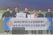 [ 타임즈 - 김시창 기자 ] 파주시는 지난 7일 수원시 국립농업박물관에서 열린 ‘제30회 경기도 농업인의 날 기념식’에서 녩년 경기도 시군 농정업무평가’2년 연속 우수기관으로 선정됐다고 밝혔다. 경기도 시군 농정업무 평가는 매년 시군의 농정시책 추진 상황을 점검하고, 경기도 농업의 경쟁력을 높이기 위해 실시되고 있다. 도는 시군을 2개 그룹(도농형, 도시형)으로 나누어 35개 분야를 평가하고, 우수한 지자체를 선정해 시상하고 있다. 파주시는 ▲외국인 계절근로자 프로그램 운영 ▲농어민 기회소득 지원 ▲친환경 농산물 생산 확대 ▲축산업 선진화 추진 ▲로컬푸드직매장 활성화 ▲농산물 직거래 확대 등 다양한 분야에서 우수한 평가를 받았다. 작년 ‘우수상’에 이어 올해도 2년 연속 ‘우수상’을 수상하며, 경기도지사 표창과 함께 900만 원의 시상금을 받았다. 이병직 파주시농업기술센터소장은 䄚년 연속 우수기관으로 선정된 것은 파주시 농업인 모두가 함께 이뤄낸 성과”라며, “앞으로도 고품질 농산물 생산 지원과 농축산업 소득 증대를 위해 최선을 다하겠다”라고 말했다.