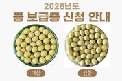 [ 타임즈 - 김시창 기자 ] 당진시는 오는 4월 10까지 2026년도 콩‧팥 정부 보급종 신청을 받는다고 19일 밝혔다. 이번에 공급하는 품종은 콩 ‘대찬’과 ‘선풍’ 2개 품종과 팥 ‘아라리’ 품종이며, 공급 가격은 1포대(5kg)당 27,790원이다. 종자는 소독과 미소독 여부를 선택해 신청할 수 있다. 신청은 각 읍면동 행정복지센터 산업팀을 통해 가능하며, 신청한 종자는 4월 1일부터 5월 8일까지 신청 시 선택한 지역농협을 통해 공급될 예정이다. 콩 ‘대찬’은 내도복성(쓰러짐 견딤)이 강해 기계수확이 쉬운 황색 대립종으로, 청국장 등 가공 적성이 우수하고 수량성이 높은 것이 특징이다. 다만, 탈립(알떨림)에 약하므로 반드시 적기에 수확해야 한다. 콩 ‘선풍’은 논 재배 적응성이 우수하고 내도복성이 강해 기계화 재배 안정성이 뛰어난 중남부 지역 특화 품종이다. 안정적인 생산을 위해 적정 재식밀도를 준수하고, 검은뿌리썩음병 예방을 위한 철저한 배수 관리가 필요하다. 아울러 팥 ‘아라리’는 배정 물량이 30kg으로 소량 공급되며, 3월 9일 오전 9시부터 종자은행을 통해 전화 선착순
