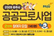 [ 타임즈 - 김시창 기자 ] 파주시가 오는 20일까지 2026년 2단계 공공근로사업 참여자 146명을 모집한다. 공공근로사업은 청년, 여성, 중장년 등 취업 취약계층에게 한시적인 일자리를 제공하고, 장기 실직자에게 재취업 도전의 발판을 마련하는 데에 목적이 있다. 근무 분야는 ▲공공서비스 ▲전산화 ▲환경정비 등 3가지 분야 총 141개 사업이다. 참여 자격은 ▲사업개시일 기준 18세 이상 ▲가구소득이 기준중위소득 70% 이하 ▲재산 4억 원 이하에 속하는 파주시민이며, 파주시 등록 외국인도 신청할 수 있다. 참여 희망자는 모집 기간 내 거주지 행정복지센터를 방문해 신청서와 구비서류를 제출해야 하며, 선발 여부는 4월 말 개별 통보될 예정이다. 선발된 인원들은 다가오는 5월 6일부터 8월 28일까지 근무하게 되며, 주요 근무조건은 ▲시간당 임금 1만 2,070원 지급 ▲4대보험 가입 ▲주휴수당 및 연차 유급휴일 제공 등이 있다. 이이구 민생경제과장은 “최근 고유가·고환율로 위기에 처한 시민들의 가계에 보탬이 되고 민생경제 활성화에 기여하길 기대한다”라고 밝혔다.