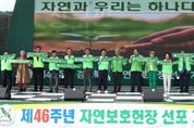 [ 타임즈 - 김시창 기자 ] 경상북도는 7일 영주 풍기인삼축제팝업공원에서 이철우 경상북도지사, 박성만 경상북도의회 의장, 박남서 영주시장, 김찬수 (사)자연보호중앙연맹 경상북도협의회장 및 22개 시·군 자연보호협의회 회원 850여 명 등이 참석한 가운데 제46주년 자연보호헌장 선포 기념식을 가졌다. 자연보호헌장 기념식은, 1970년대 급격한 산업발달로 오염된 자연을 지키고 가꾸기 위해 정부에서 1978년 10월 5일 자연보호헌장을 선포한 것을 기념하고 그 정신을 되새기며 도민의 환경윤리에 대한 올바른 가치관 인식 제고와 자연보호 참여를 활성화하기 위해 매년 개최되고 있다. 이날 행사는 경북도 및 22개 시군 자연보호협의회의 자연보호 기 입장을 시작으로 하여, 자연보호헌장과 자연보호 실천 결의문 낭독, 유공자 표창, 환영사, 기념사, 축사, 퍼포먼스 순으로 진행됐다. 자연보호협의회 회원들은 자연보호헌장과 자연보호 실천 결의문을 통해 자연환경 중요성과 보전의 필요성을 알리고 자연훼손과 환경오염을 최소화하기 위한 환경지킴이 역할에 최선을 다할 것을 다짐했다. 이어서 환경보전 활동에 헌신하고 깨끗한 경북