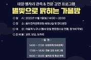 [ 타임즈 - 김시창 기자 ] 동두천시시설관리공단은 오는 11월 1일 동두천자연휴양림에서 가을밤 하늘을 배경으로 별자리와 행성을 함께 관측하는 '천문행사 ‘별빛으로 밝히는 가을밤’'을 개최한다. 이번 행사는 시민이 자연 속에서 직접 천체를 관측하며 과학문화의 즐거움을 체험하고, 가족 단위 방문객에게는 휴식과 소통의 시간을 제공하기 위해 마련됐다. 행사는 오후 2시부터 8시까지 자연휴양림 어울림동 세미나실 및 잔디마당 일원에서 진행된다. 낮에는 태양 전용 망원경을 활용한 태양 관측 체험, 저녁에는 전문 강연과 함께 달·행성·별자리 관측 프로그램이 운영된다. 또한 시민 참여형 이벤트인 ‘별자리 퀴즈’도 열려 참가자들이 과학을 보다 쉽고 흥미롭게 접할 수 있도록 구성됐다. 이종진 동두천시시설관리공단 이사장은‘별빛으로 밝히는 가을밤’은 가족과 함께 별을 보며 자연의 아름다움과 과학의 신비로움을 동시에 느낄 수 있는 뜻깊은 행사”라며“앞으로도 시민이 함께 참여할 수 있는 ESG형 과학문화 프로그램을 지속적으로 추진하겠다”라고 밝혔다.