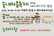 [ 타임즈 - 김시창 기자 ] 동두천시 송내동 주민자치위원회는 오는 11월 2일 오후 2시부터 지행역 1번 출구 메타세콰이아길에서 ‘2025 송내마을축제’를 개최한다고 밝혔다. 이번 축제는 주민자치센터 프로그램 수강생을 비롯해 지역 학교, 동아리, 학원 등 다양한 주민이 참여해 주민자치 활성화와 지역 문화·예술 교류의 장을 마련하고자 기획됐다. 행사 당일에는 송내동 주민 노래자랑, 주민자치 프로그램 발표회·전시회, 초청공연, 체험부스, 벼룩시장, 먹거리 마당 등 다채로운 프로그램이 진행된다. 특히 주민이 직접 참여하는 노래자랑과 맷돌체조, 트롯고고장구, 실버태권도 등 7개 팀의 프로그램 발표회가 마련돼, 지역 주민들이 그동안 갈고닦은 실력을 선보일 예정이다. 또한 도자기 만들기, 팽이 꾸미기, 만년도장 만들기 등 가족 단위로 즐길 수 있는 체험부스도 함께 운영된다. 이번 축제는 송내동 주민의 화합과 자긍심을 높이는 것은 물론, 주민자치센터 프로그램 홍보와 신규 수강생 유치에도 도움이 될 것으로 기대된다. 아울러 지역 소상공인과 시민이 함께 참여하는 벼룩시장도 열려 지역경제 활성화에도 기여할 전망이다.